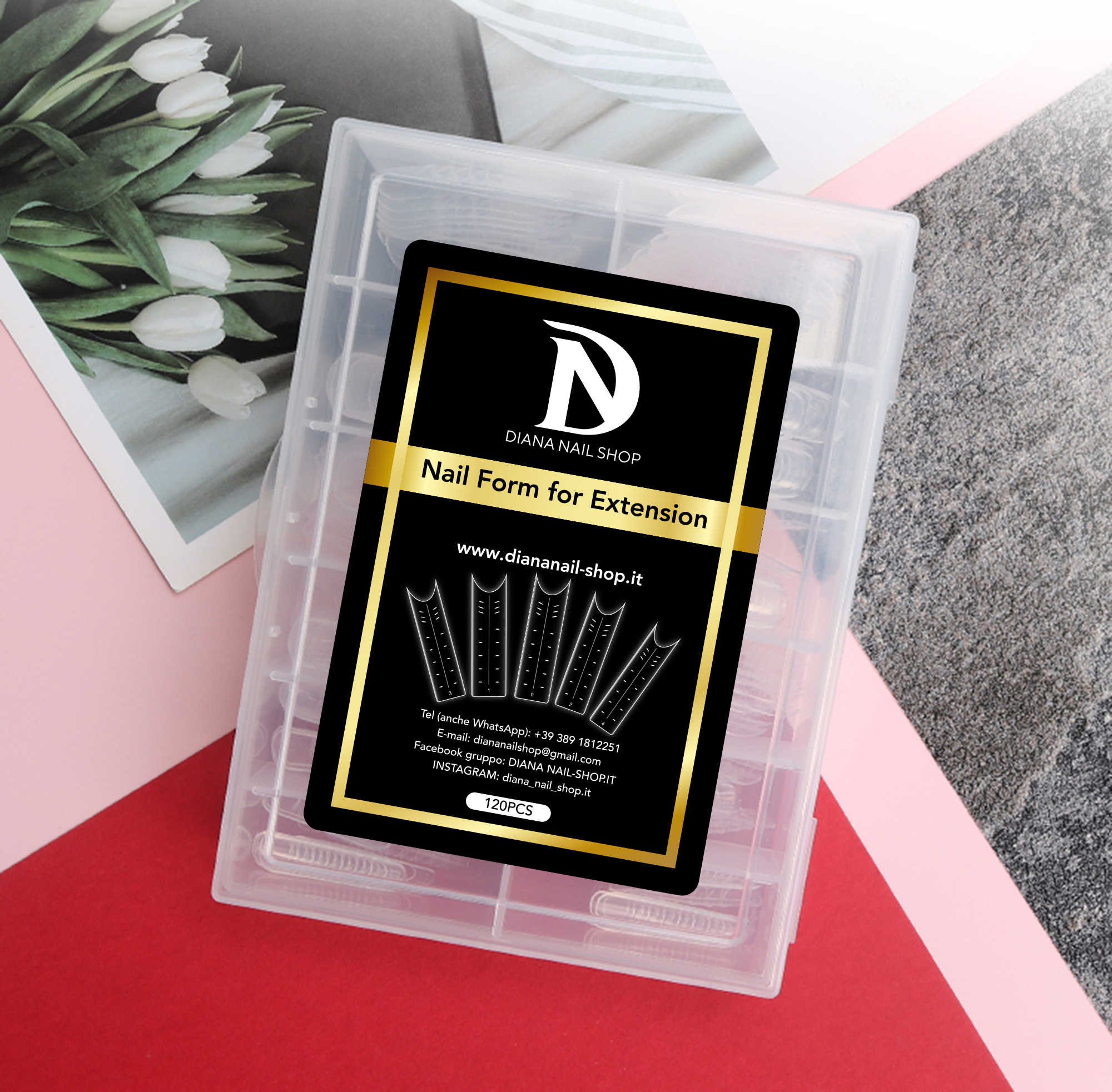 Si utilizzano in abbinamento al gel costruttore, come le classiche nail form. Ogni confezione contiene 120 tip trasparenti suddivise in diverse misure, pensate per adattarsi facilmente ad ogni tipologia d’unghia; sono organizzate in un pratico box a scomparti.