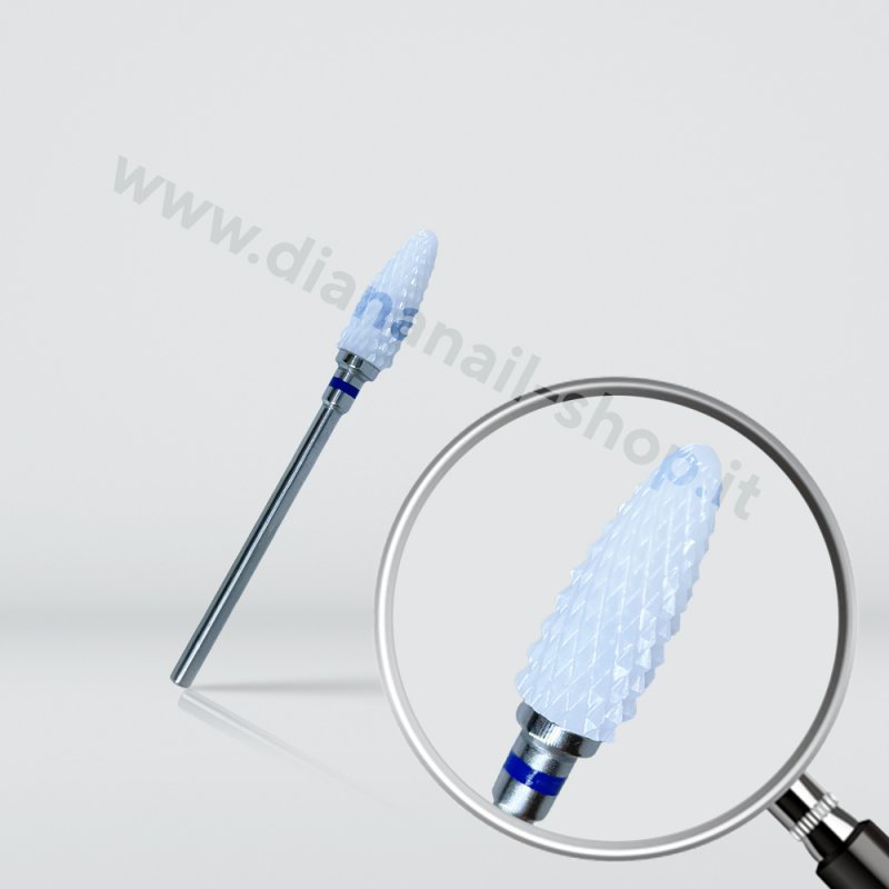 Le punte in ceramica sono l’ideale per un lavoro preciso, pulito e professionale perchè producono pochissime vibrazioni al manipolo della fresa, la mano dell’onicotecnica è quindi più ferma e stabile, garantendo un lavoro più preciso e senza difetti. L’utilizzo della punta fresa in ceramica garantisce una bellissima esperienza anche per la cliente perchè, con le sue piccole scanalature, genera pochissimo attrito e quindi si percepisce molto meno la sensazione di calor
