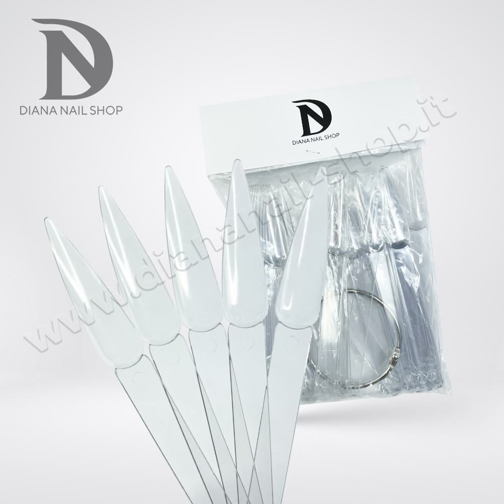 Spesso le clienti sono indecise sulla nail art e soprattutto sul colore da scegliere, la cosa migliore è mostrarglieli senza dover aprire un barattolino e una boccettina dopo l’altra! Con le Tip stiletto trasparente, grazie alla colorazione neutra che non altera le nuance dei colori applicati sopra, le clienti potranno scegliere con semplicità e potendo anche sovrapporre la tip alla propria unghia per intravederne il risultato finale.